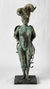 The patina is an experimental one, made with drained and burnt copper nitrate, with golden polished spots.