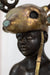 HUICHOL is a bronze sculpture of a boy with a deer mask or hat.
