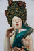 LA NIÑA Y EL DRAGÓN is a resin sculpture of a woman with flower hair, a heart and a brain in her hand.
