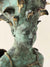 The patina is an experimental one, made with drained and burnt copper nitrate, with golden polished spots.