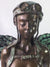 This piece has a black and green patina with golden details, polished to reveal the natural bronze color.