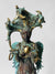 The interpretation of Francesca dalla Benetta is a sculptural figure with large wings and unruly hair that in her movements, as if she were on fire, seems to draw the shape of demonic horns. Her demeanor is reflective, perhaps contrite, with a low, inward gaze. The beauty of her is decadent, yet the strength of her wings. the elegance of gold in her hair and the delicacy of the flowers convey power and a message of freedom: to be able to choose our future and escape from a pre-designed destiny.