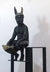 This piece has a black patina with golden details, polished to reveal the natural bronze color.
