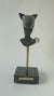 FOX is a bronze bronce of a woman with a foxy mask or hat and a small fox on her feet.