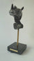 RINO is a bronze bust of a man with a rhino mask or hat.