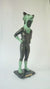 UOMO LUPO is a bronze sculpture of a man with a wolf mask or hat.