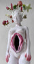 CRISÁLIDA is a sculpture of a standing woman, in a static and contemplative position. Her belly is open and shows a huge vagina. Flowers come out of it.