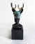FREE SPIRIT is a small bronze bust of a woman with a deer mask or hat.
