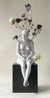 IL RIPOSO II (the rest in Italian) is a resin sculpture of a sitting woman with many flowers on her head.