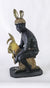 RABBIT is a bronze sculpture of a chubby man sitting on rabbit toy.
