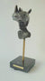 RINO is a bronze bust of a man with a rhino mask or hat.
