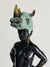 WISE AND WILD is a bronze sculpture of a man with a rhino mask or hat.